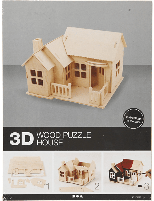 Creativ Company 3D Houten Bouwset – Huis met Terras, ca. 19 × 17,5 × 15 cm
