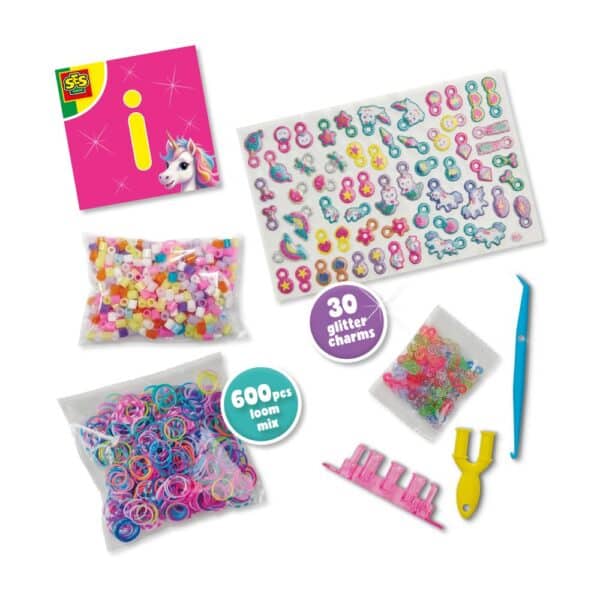 Ontdek een wereld vol creativiteit en creëer de leukste unicorn sieraden met de SES Creative Unicorn Loom bedelarmbandjes set. Maak (vriendschaps)armbandjes alleen of samen met al je vrienden en vriendinnen. En maak ze daarna nog leuker met de speciale kralen en zelf geknutselde unicorn bedels!